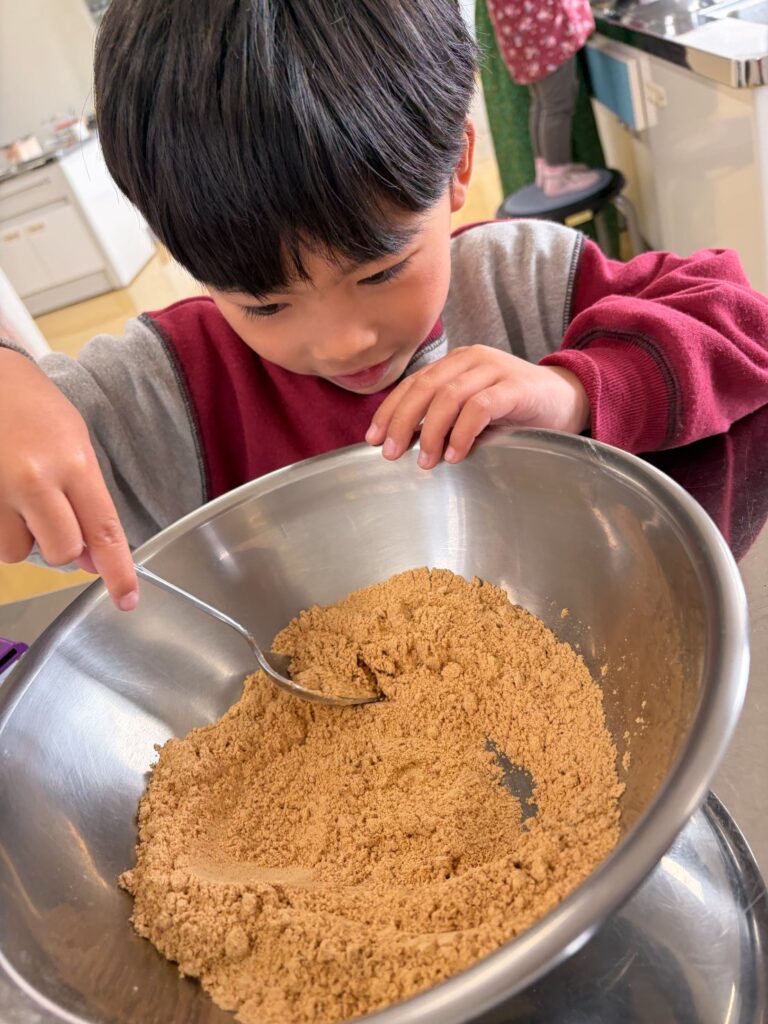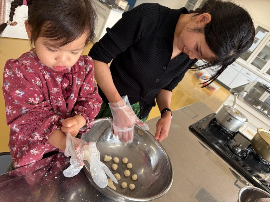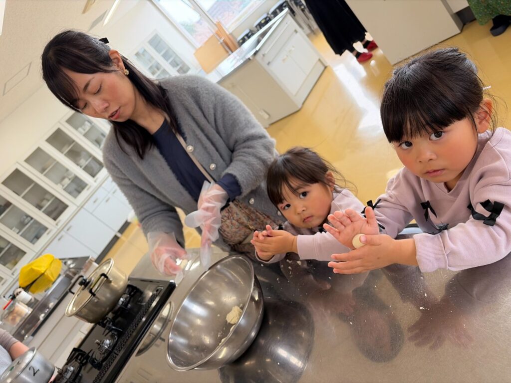 まずは、お花見に持っていくお団子作りから(^▽^)/