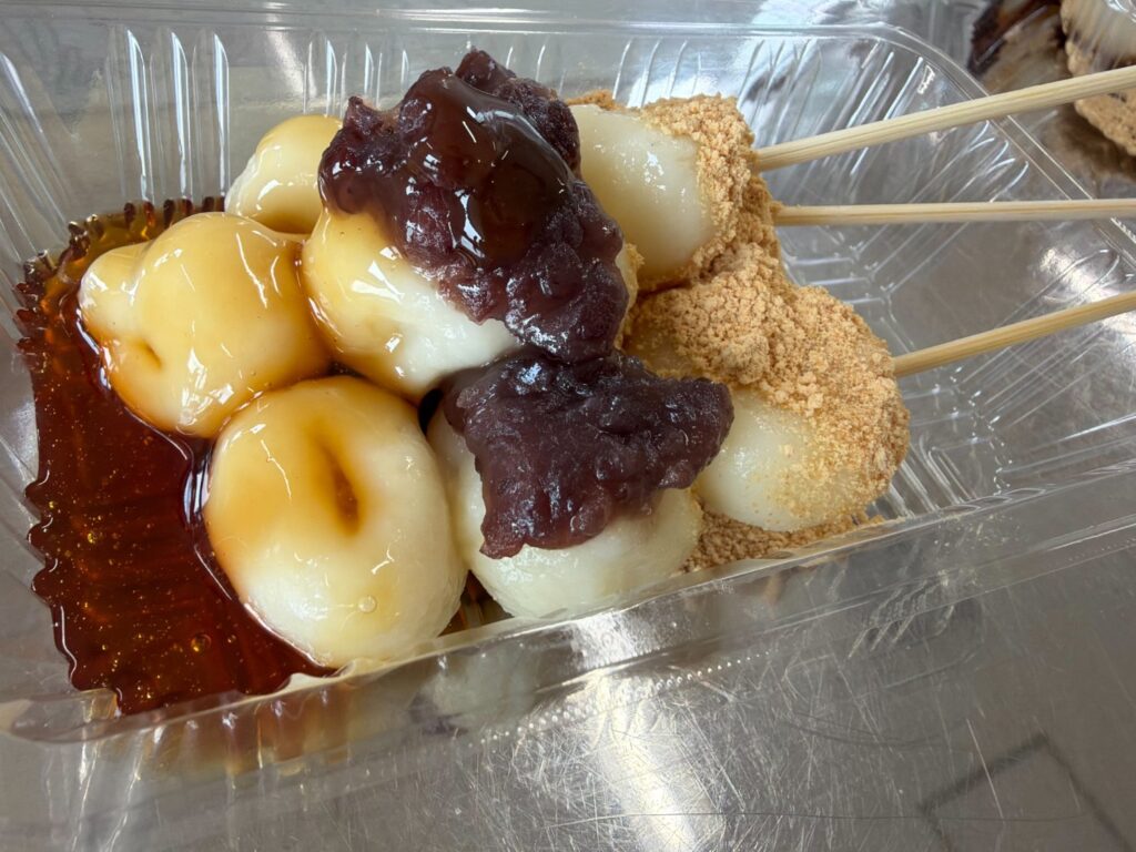 完成したらお好みのものをトッピング。きな粉・あんこ・みたらし、どれも人気でした。