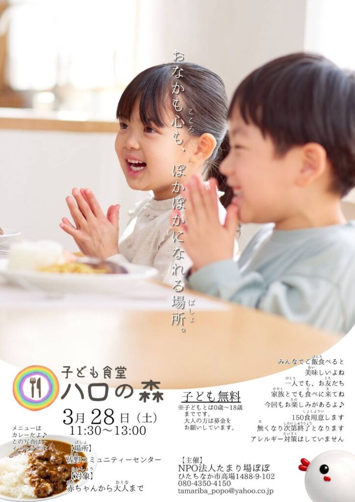 2025年度 ラストとなります、子ども食堂 ハロの森。3/28(土)に開催します!